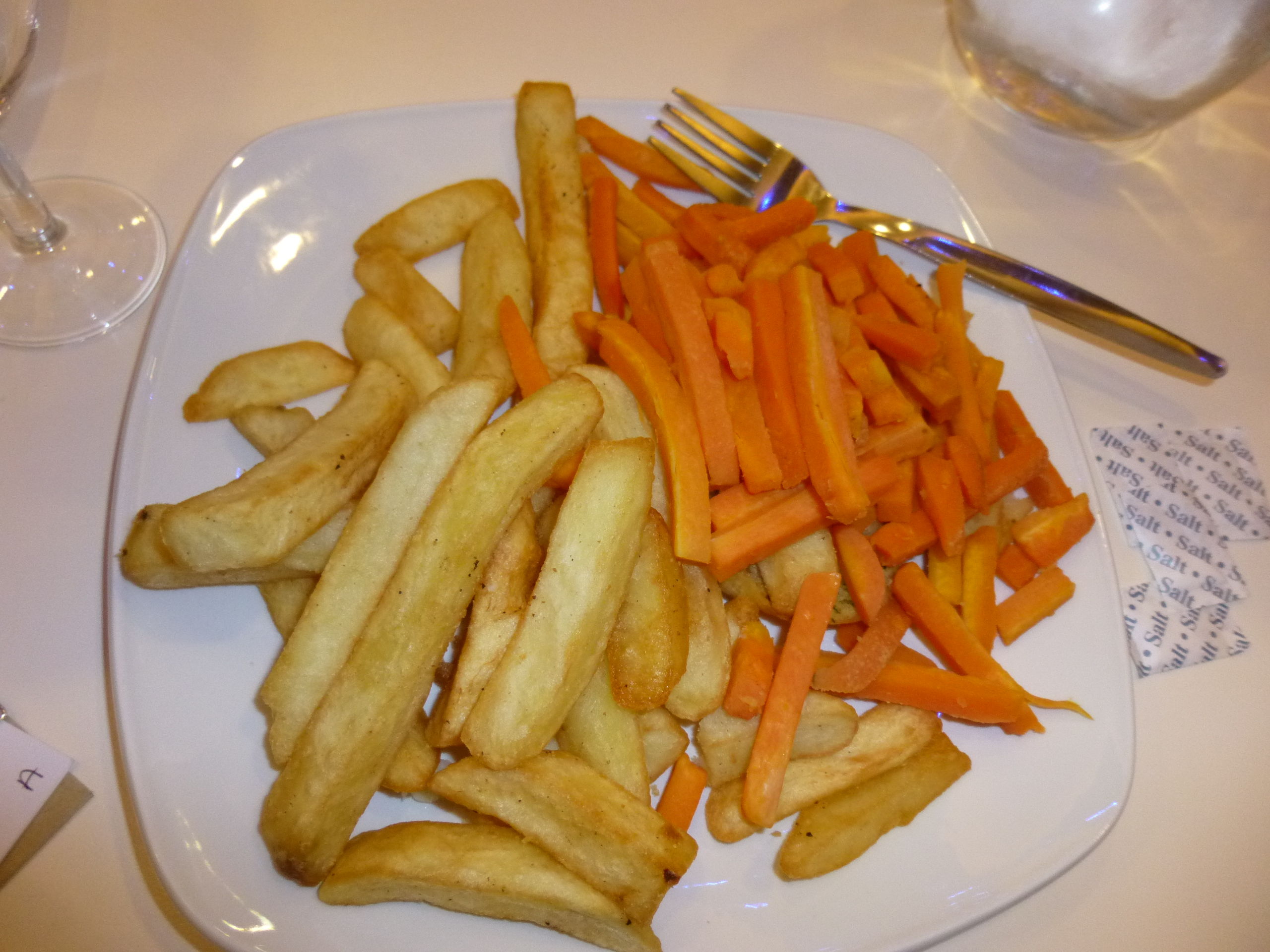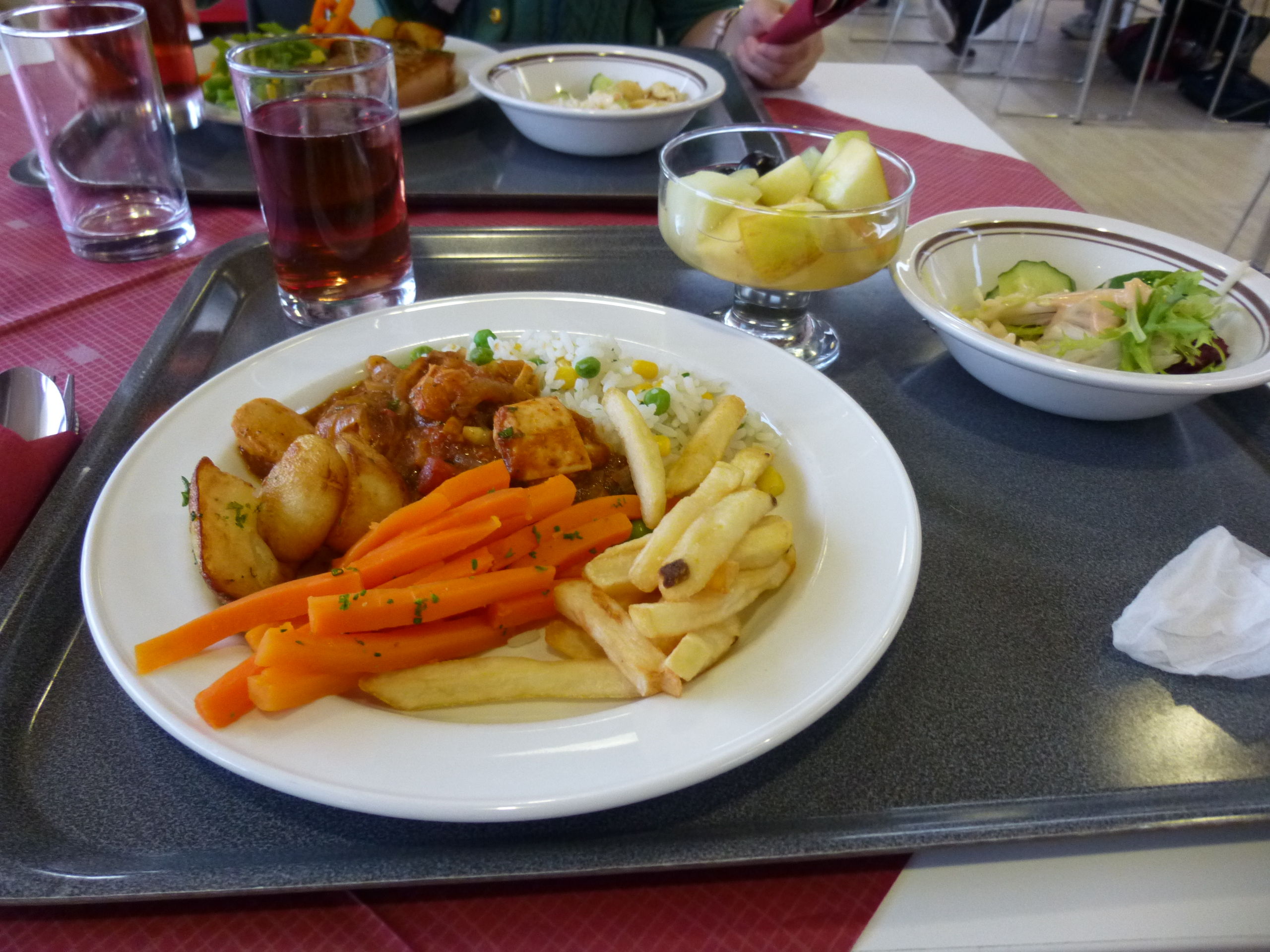 ※これは、私が「ポテト少しとサラダ」と注文したら、おばちゃんにポテトどっさりと人参どっさり盛られました。ちなみに、写真では見えませんが、このポテトと人参の山の下にバケットが一切れあります。