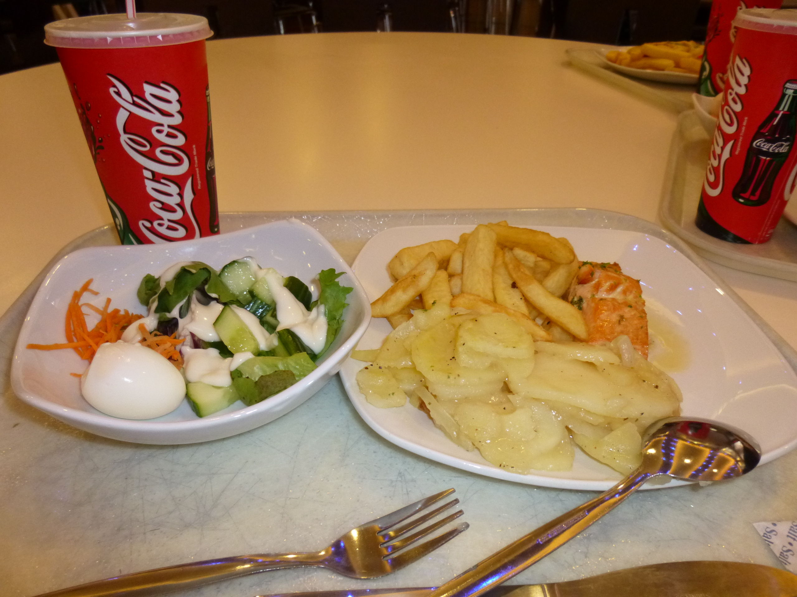 ちなみに、食堂はビュッフェ方式で、食堂のおばさんが注文に応じてお皿に盛ってくれます。