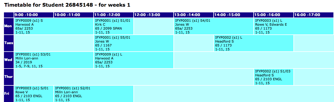 今日で一週間の授業を終えたので、時間割について書きたいと思います。